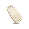 This smart car key cover case make of high quality TPU_ The surface of the key case is embellished with golden stripes and has an excellent appearance_ The soft material of this key cover can effectively prevent your car keys from being damaged by drops and scratches_ The car key cover is tight and can fit the car key well.